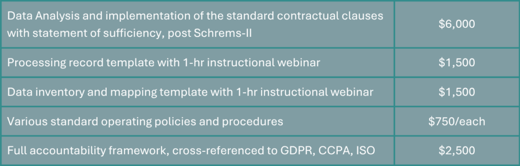 We offer packages and various templates to help you reduce the costs of data compliance.