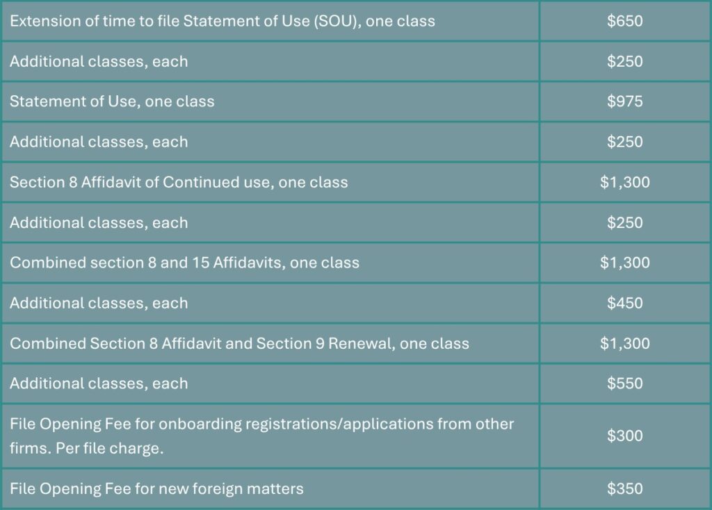 Sequel offers fixed fees for many of these services and charges on an hourly basis for preparing responses to any Trademark Office objections. (See hourly rates listed below.)